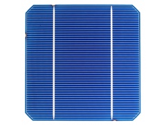 | 正面 (-) | 2根1.5 mm寬的主電極 (銀), 堿腐蝕表面,藍色的減反射膜(氮化硅) |